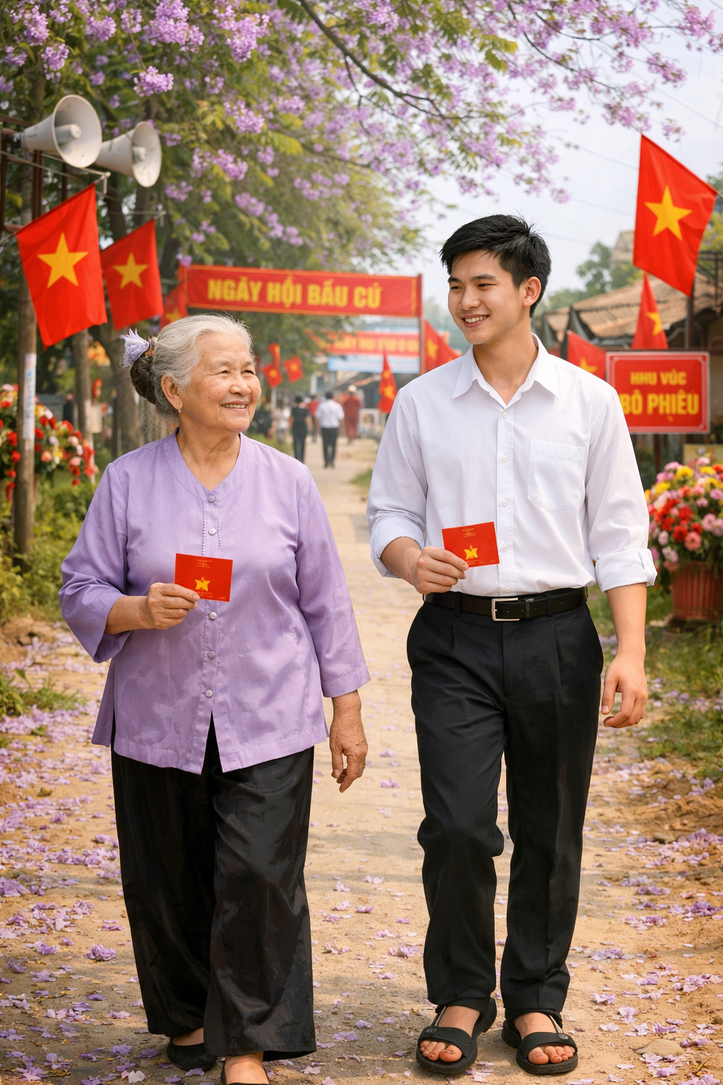 Tuấn khẽ siết nhẹ bàn tay bà, trong lòng mỗi người đều lặng lẽ mang theo một niềm tin giản dị mà bền bỉ, rằng những lá phiếu hôm nay, của bà, của Tuấn, của bao người dân trong ấp sẽ góp vào dòng chảy chung của đất nước, để ngày mai khi hoa xoan, hoa gạo lại nở, quê hương sẽ càng yên vui và tươi sáng hơn.